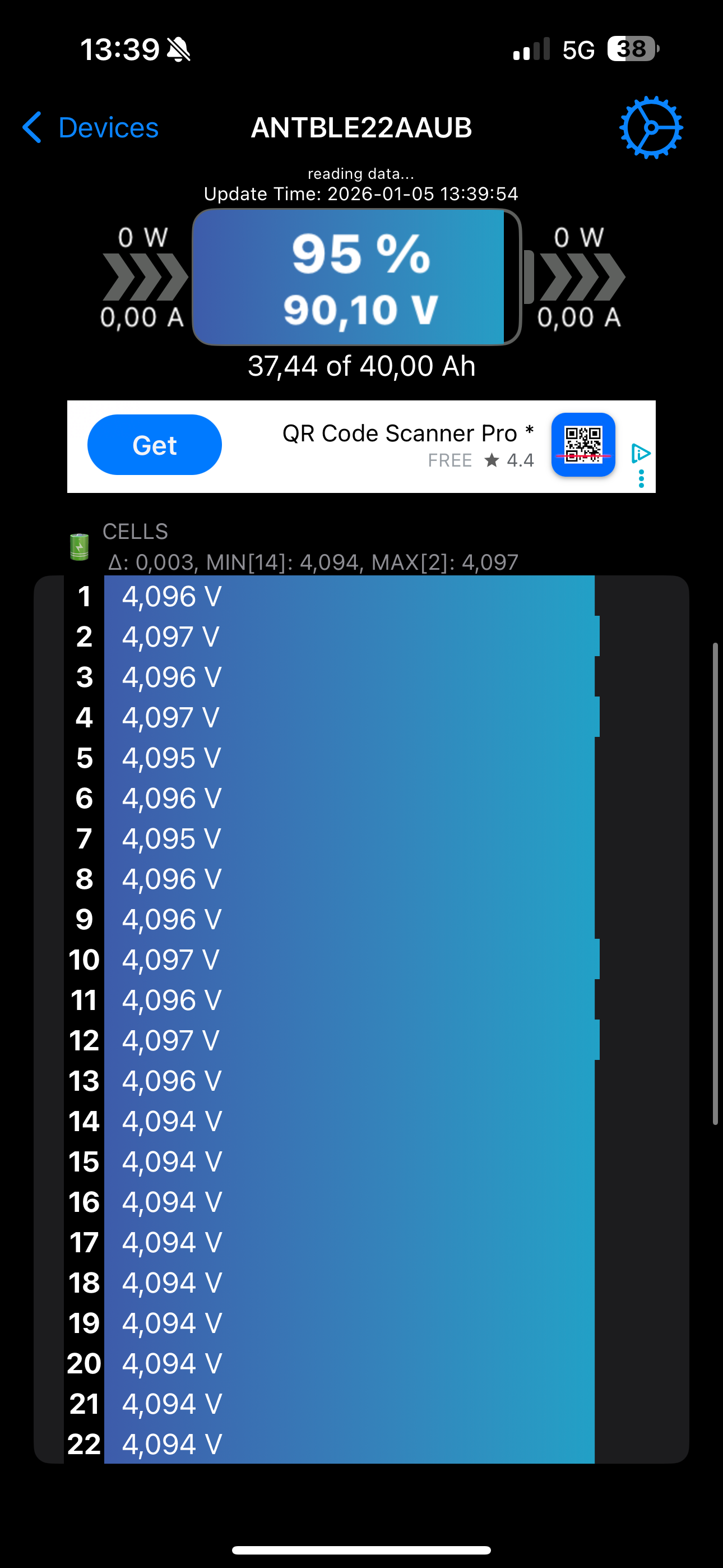 - 22s10p battery with Smart BMS (3.8kWh or 3.2kWh options)